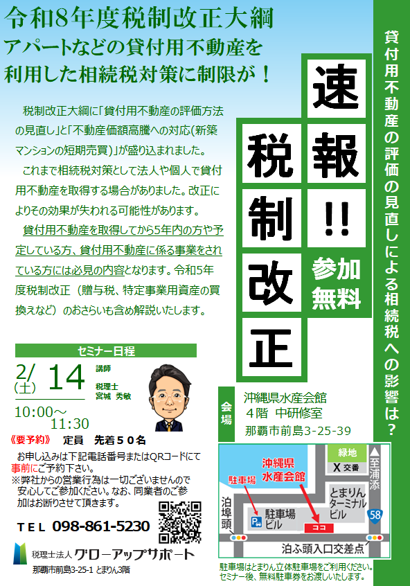 税制改正セミナー(不動産オーナー向け) R8.2.14(土)